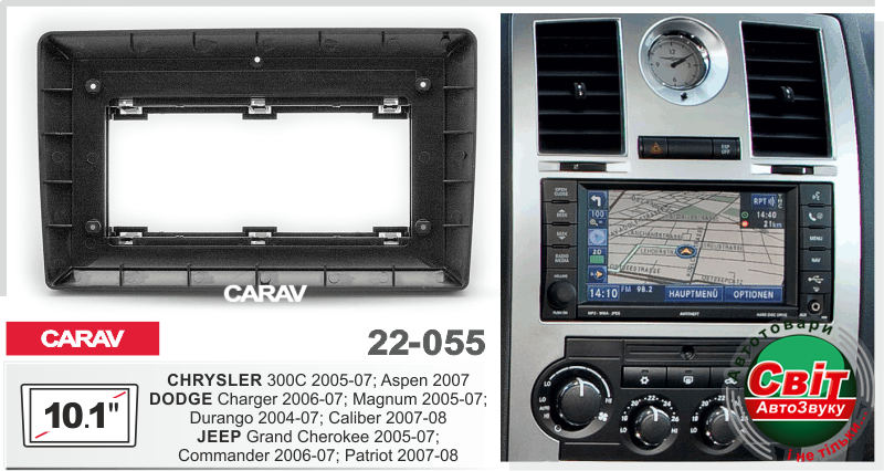 CARAV 22-055: 10.1" / 250:241 x 146 мм / CHRYSLER 300C 2005-07; Aspen 2007 / DODGE Charger 2006-07; Magnum 2005-07; Durango 2004-07; Caliber 2007-2008 / JEEP Grand Cherokee 2005-2007; Commander 2006-2007; Patriot 2007-2008