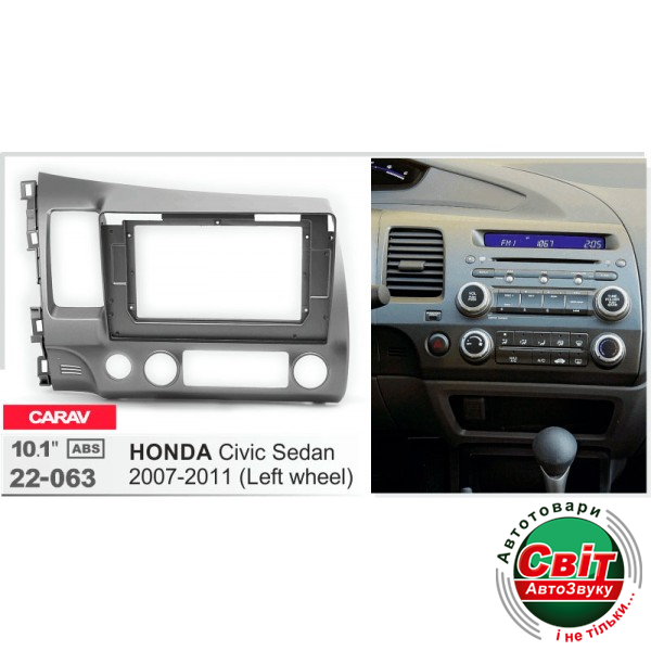 Рамка перехідна Carav 22-063 Honda CivicПерехідна рамка для установки автомагнітоли: Carav 22-063: 10.1"- 250/241 х 146 мм.