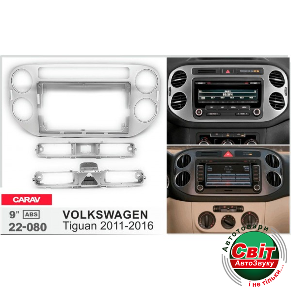 Рамка перехідна Carav 22-080 Volkswagen TiguanПерехідна рамка для установки автомагнітоли: Carav 22-080: 9"- 230/220 х 130 мм.