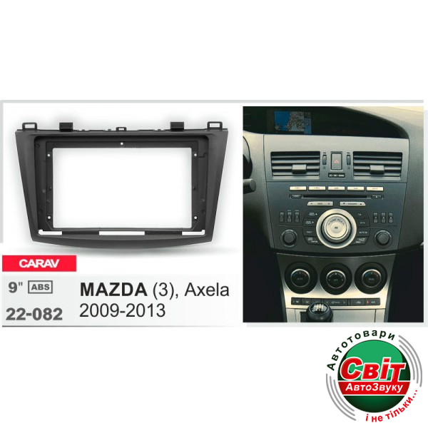 Рамка перехідна Carav 22-082 Mazda 3, AxelaПерехідна рамка для установки автомагнітоли: Carav 22-082: 9"- 230/220 х 130 mm