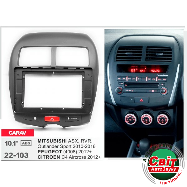 Рамка перехідна Carav 22-103 Citroen, Mitsubishi, PeugeotПерехідна рамка для установки автомагнітоли: Carav 22-103: 10.1" - 250/241 х 146 мм.