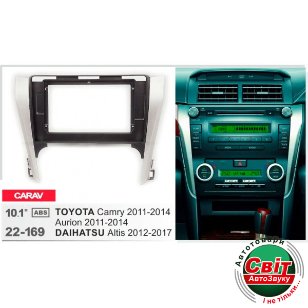 Рамка перехідна Carav 22-169 Toyota Camry, Aurion, Daihatsu AltisПерехідна рамка для установки автомагнітоли: CARAV 22-169: 10.1" - 250/241 х 146 мм