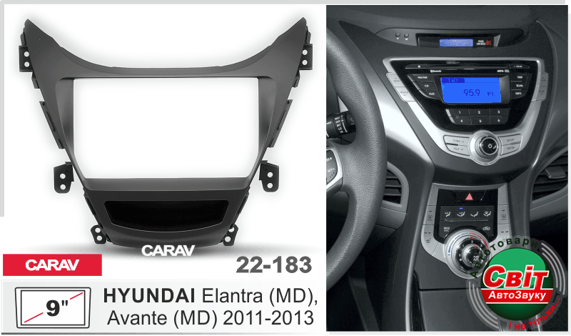 CARAV 22-183: 9" / 230:220 x 130 mm / HYUNDAI Elantra (MD), Avante (MD) 2010-2013