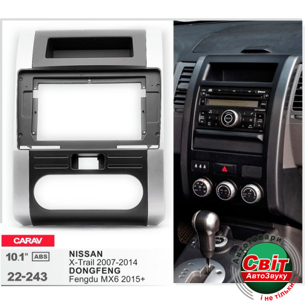 Рамка перехідна Carav 22-243 Nissan X-Trail, Dongfeng Fengdu MX6Перехідна рамка для установки автомагнітоли: Carav 22-243: 10.1"- 250/241 х 146 мм