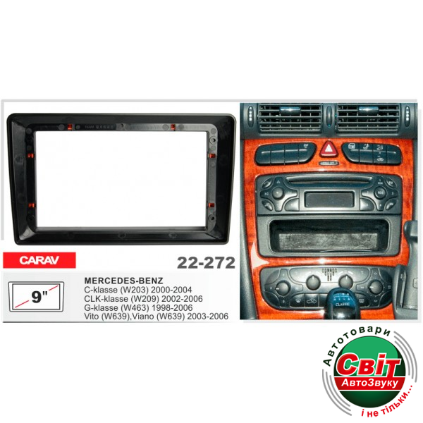 Рамка перехідна Carav 22-272 Mercedes Vito, Viano, W639, W203, W209, W463Перехідна рамка для установки автомагнітоли: Carav 22-272: 9" - 230/220 x 130 mm