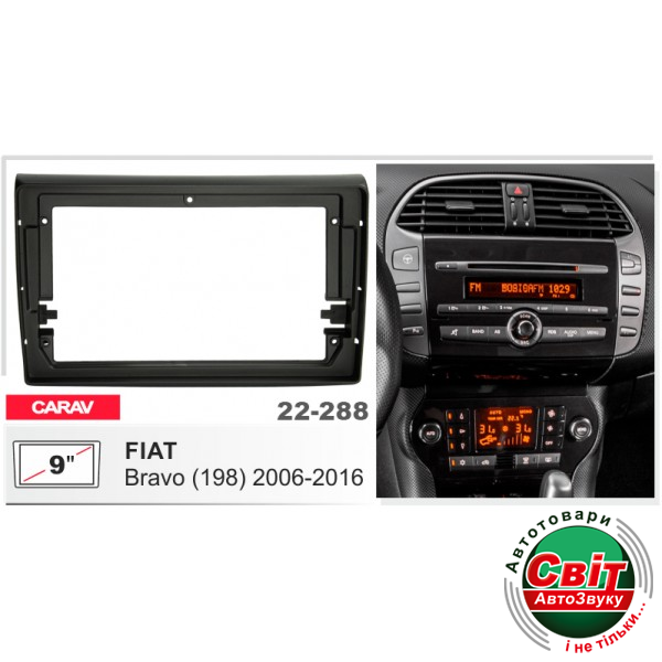 Рамка перехідна Carav 22-288 Fiat BravoПереходная рамка для установки автомагнитолы: Carav 22-288: 9" - 230/220 x 130 mm