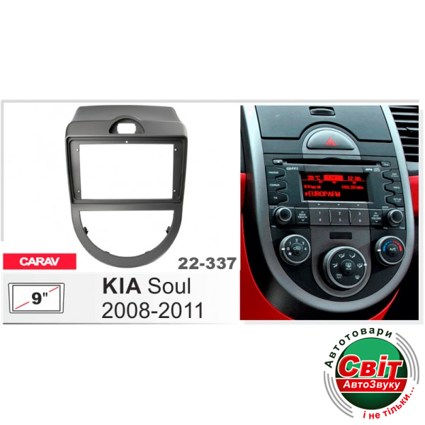 Рамка перехідна Carav 22-337 KIA SoulПерехідна рамка для установки автомагнітоли: Carav 22-337: 9" - 230/220 x 130 mm