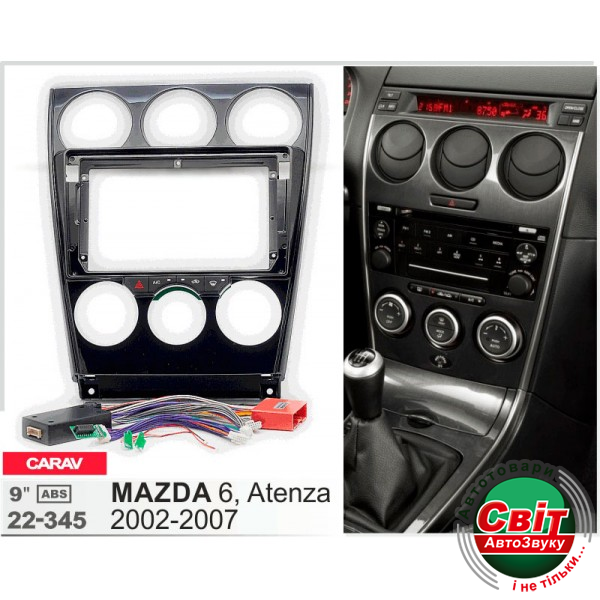 Рамка перехідна Carav 22-345 Mazda 6, AtenzaПерехідна рамка для установки автомагнітоли: Carav 22-345: 9" - 230/220 x 130 mm.