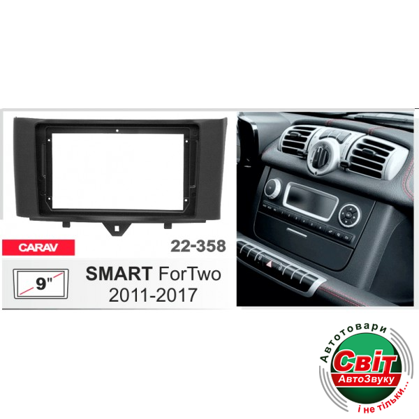 Рамка перехідна Carav 22-358 Smart ForTwoПерехідна рамка для установки автомагнітоли: Carav 22-358: 9" - 230/220 x 130 mm
