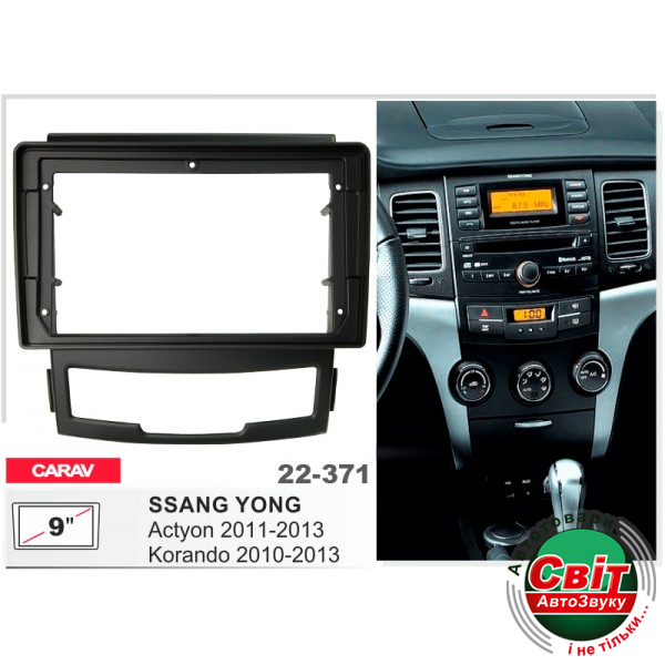 Рамка перехідна Carav 22-371 SsangYong Actyon, KorandoПереходная рамка для установки автомагнитолы: Carav 22-371: 9" - 230/220 x 130 mm