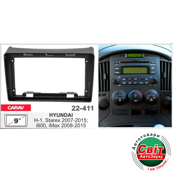 Рамка перехідна Carav 22-411 Hyundai H-1, Grand StarexПереходная рамка для установки автомагнитолы: Carav 22-411: 9" - 230/220 x 130 mm