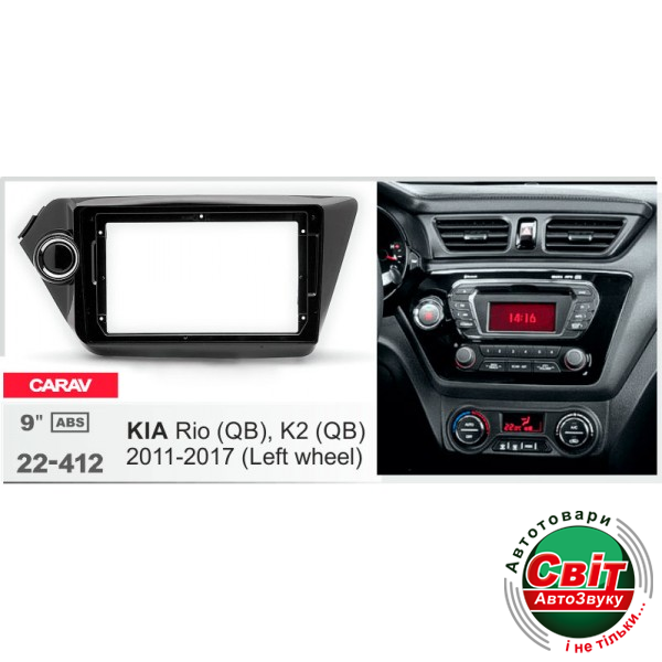 Рамка перехідна Carav 22-412 KIA Rio, K2Перехідна рамка для установки автомагнітоли: Carav 22-412: 9"- 230/220 х 130 мм.