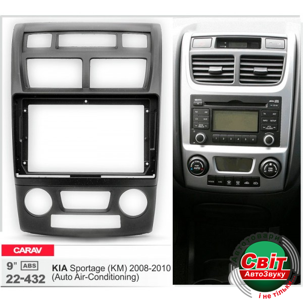 Рамка перехідна Carav 22-432 KIA SportageПереходная рамка для установки автомагнитолы: CARAV 22-432: 9" - 230/220 х 130 mm.