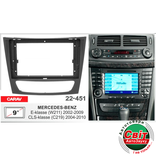 Рамка перехідна Carav 22-451 Mercedes W211, C219Перехідна рамка для установки автомагнітоли: Carav 22-451: 9" - 230/220 x 130 mm