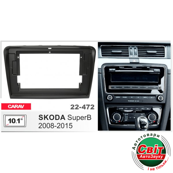 Рамка перехідна Carav 22-472 Skoda SuperBПерехідна рамка для установки автомагнітоли: Carav 22-472: 10.1" - 250/241 x 146 мм