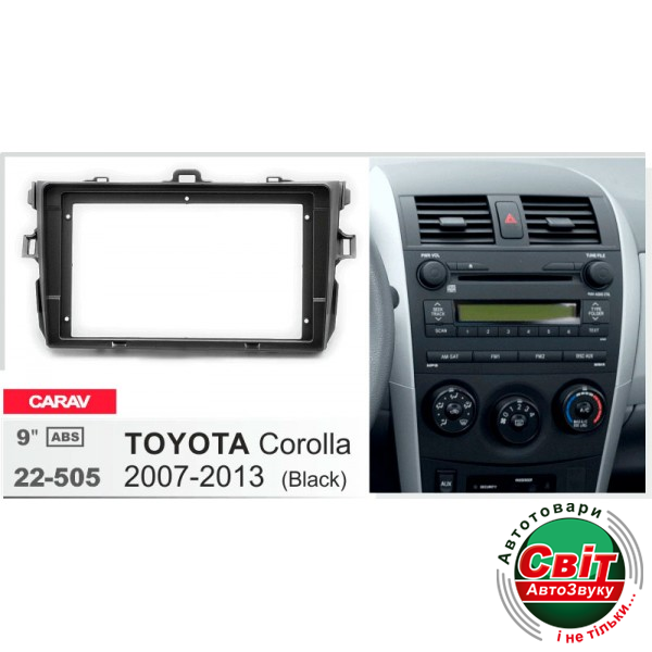 Рамка перехідна Carav 22-505 Toyota CorollaПерехідна рамка для установки автомагнітоли: Carav 22-505: 9"- 230/220 х 130 mm