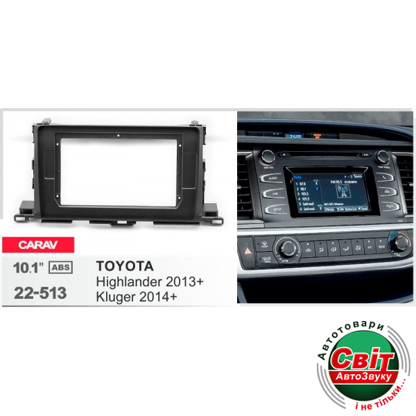 Рамка перехідна Carav 22-513 Toyota Highlander, KlugerПерехідна рамка для установки автомагнітоли: Carav 22-513: 10.1"- 250/241 х 146 мм