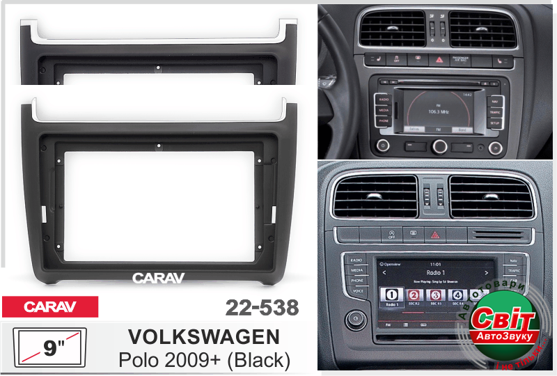 CARAV 22-538: 9" / 230:220 x 130 mm / VOLKSWAGEN Polo 2009+
