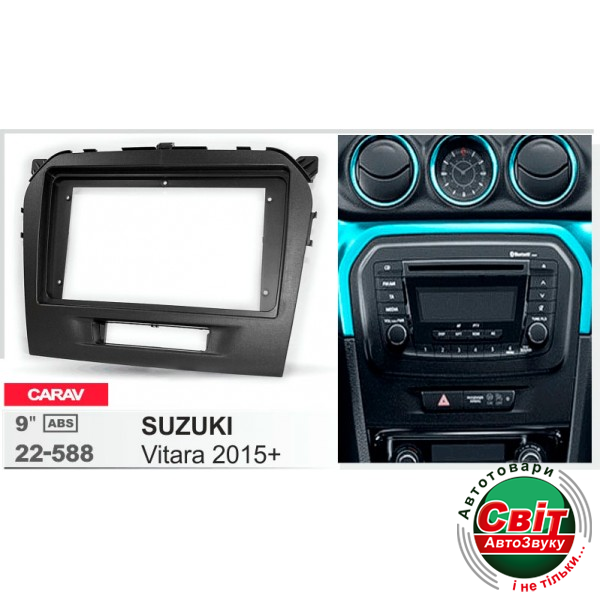 Рамка перехідна Carav 22-588 Suzuki VitaraПерехідна рамка для установки автомагнітоли: Carav 22-588: 9" - 230/220 х 130 mm
