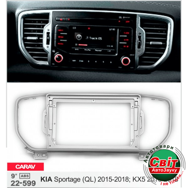 Рамка перехідна Carav 22-599 KIA Sportage, KX5Перехідна рамка для установки автомагнітоли: Carav 22-599: 9"- 230/220 х 130 мм.