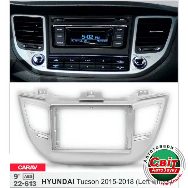 Рамка перехідна Carav 22-613 Hyundai TucsonПерехідна рамка для установки автомагнітоли: Carav 22-613: 9"- 230/220 х 130 mm