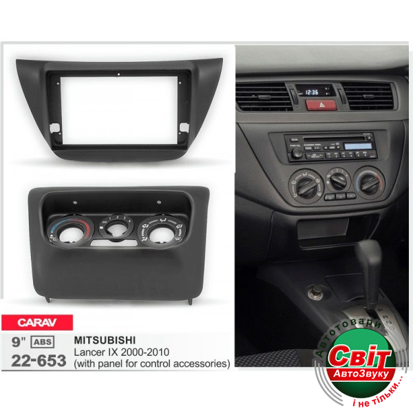 Рамка перехідна Carav 22-653 Mitsubishi LancerПерехідна рамка для установки автомагнітоли: Carav 22-653: 9" - 230/220 x 130 mm