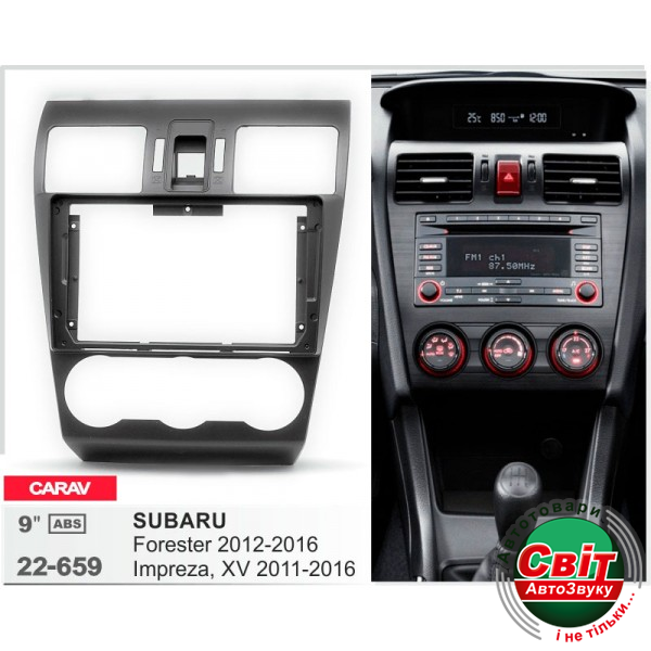 Рамка перехідна Carav 22-659 Subaru Forester, Impreza, XVПерехідна рамка для установки автомагнітоли: Carav 22-659: 9" - 230/220 x 130 mm