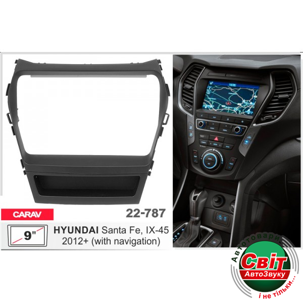 Рамка перехідна Carav 22-787 Hyundai iX-45, Santa FeПереходная рамка для установки автомагнитолы: Carav 22-787: 9" - 230/220 x 130 mm