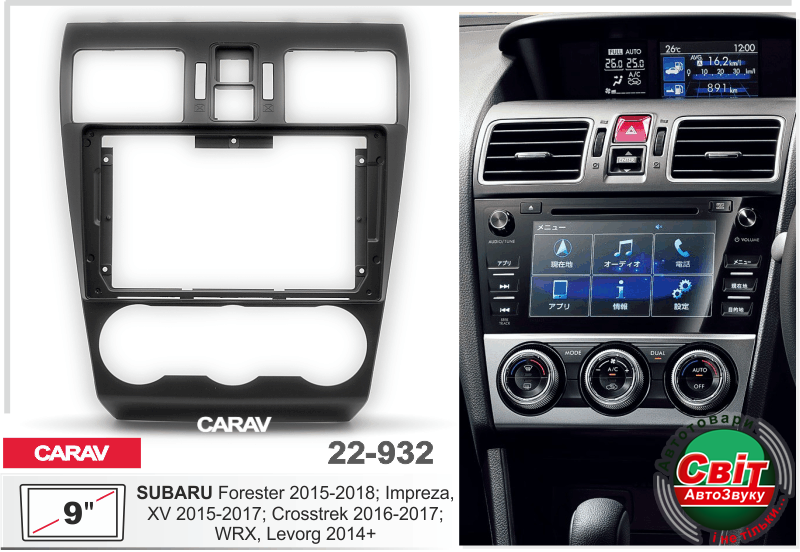 CARAV 22-932: 10.1" / 250:241 x 146 mm / SUBARU Forester 2015-2018; Impreza, XV 2015-2017; Crosstrek 2016-2017; WRX, Levorg 2014+