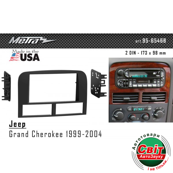 Рамка перехідна Metra 95-6546B Jeep Grand CherokeeПереходная рамка для установки автомагнитолы: Metra 95-6546B: 2 DIN - 173 x 98 mm