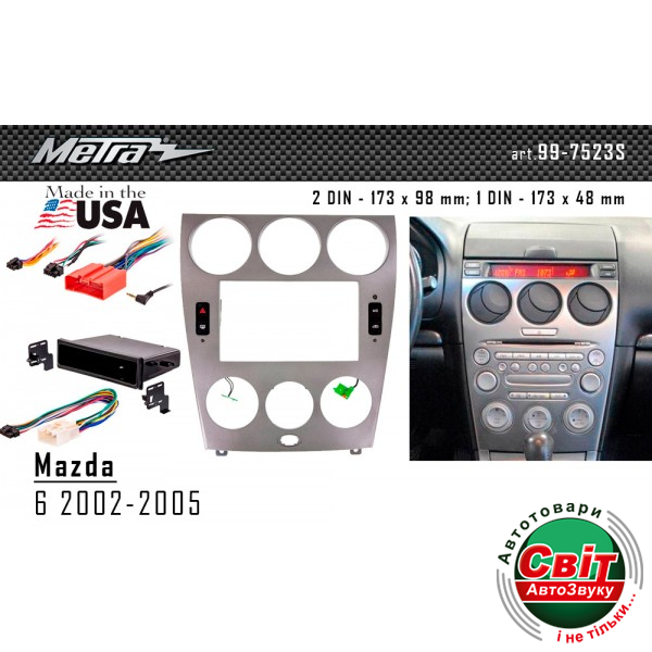 Рамка перехідна Metra 99-7523S Mazda 6Переходная рамка для установки автомагнитолы: Metra 99-7523S: 2 DIN - 173 x 98 mm;