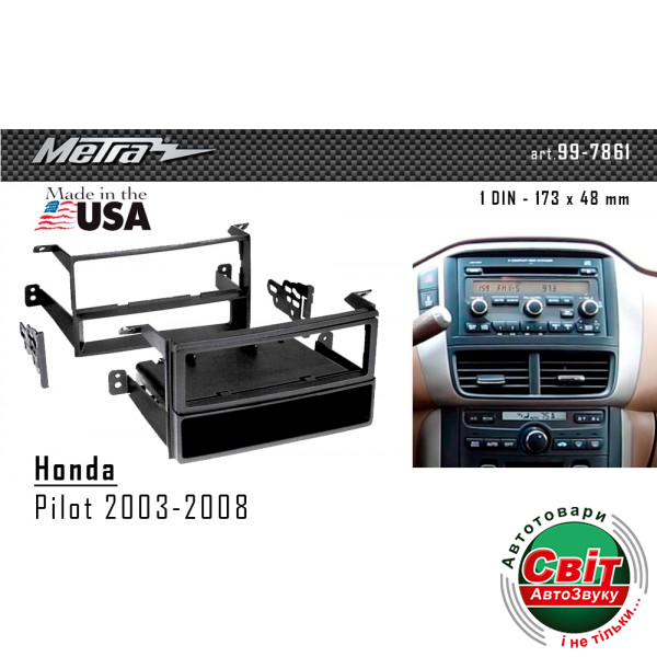 Рамка перехідна Metra 99-7861 Honda PilotПереходная рамка для установки автомагнитолы: Metra 99-7861: 1 DIN - 178 x 48 mm