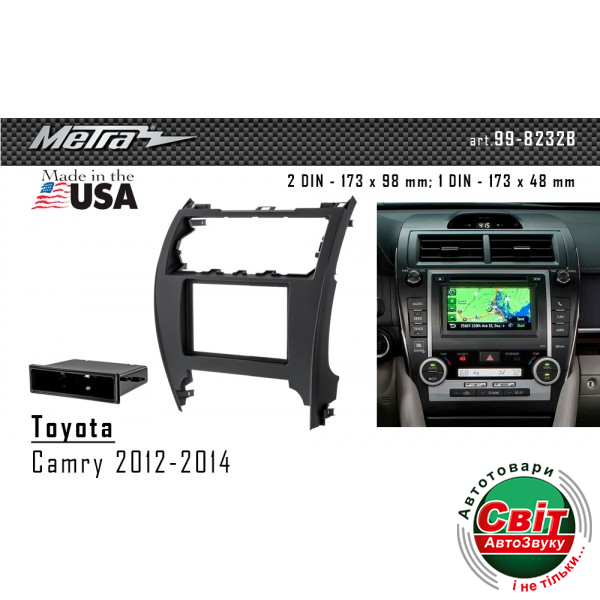 Рамка перехідна Metra 99-8232B Toyota CamryПереходная рамка для установки автомагнитолы: Metra 99-8232B: 2 DIN - 173 x 98 mm;