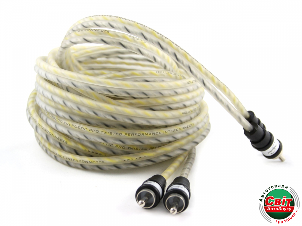 Кабель RCA міжблочний Hollywood PRO 211 (1m)1м матово-прозрачный мягкий поливинилхлорид, желто-черная витая пара, мини дизайн RCA раъемов, никелевое покрытие