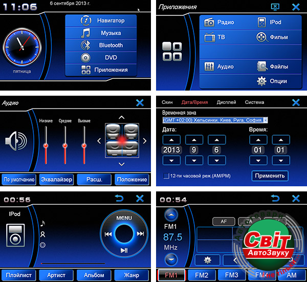 - Регулировка: звука, низких, высоких, средних частот, баланса и фейдера