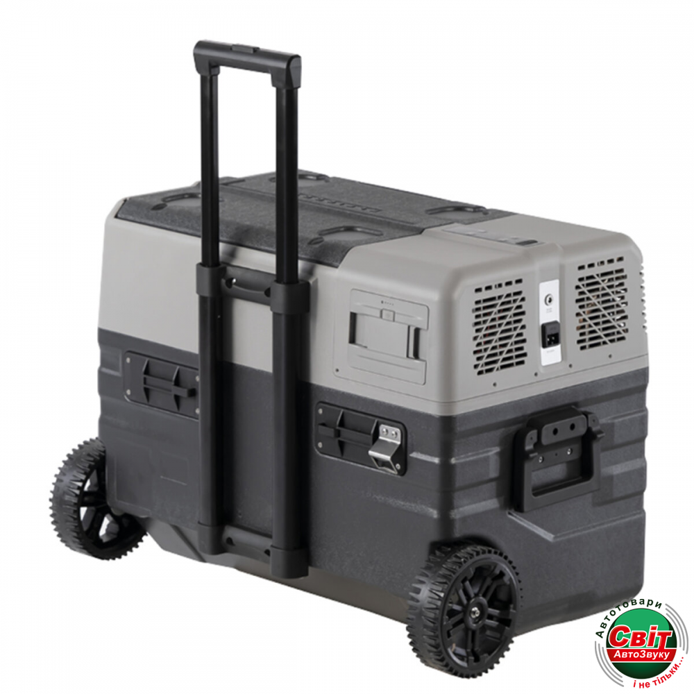 - Дополнительные характеристики: Управление через приложение по Bluetooth, гнездо USB для зарядки гаджетов, Подсветка холодильной камеры, Трехступенчатая защита аккумулятора авто от разрядки, Защита от перепадов напряжения, Защита компрессора от перегрева, Съёмные колёса, Открывачка для бутылок, Телескопическая ручка