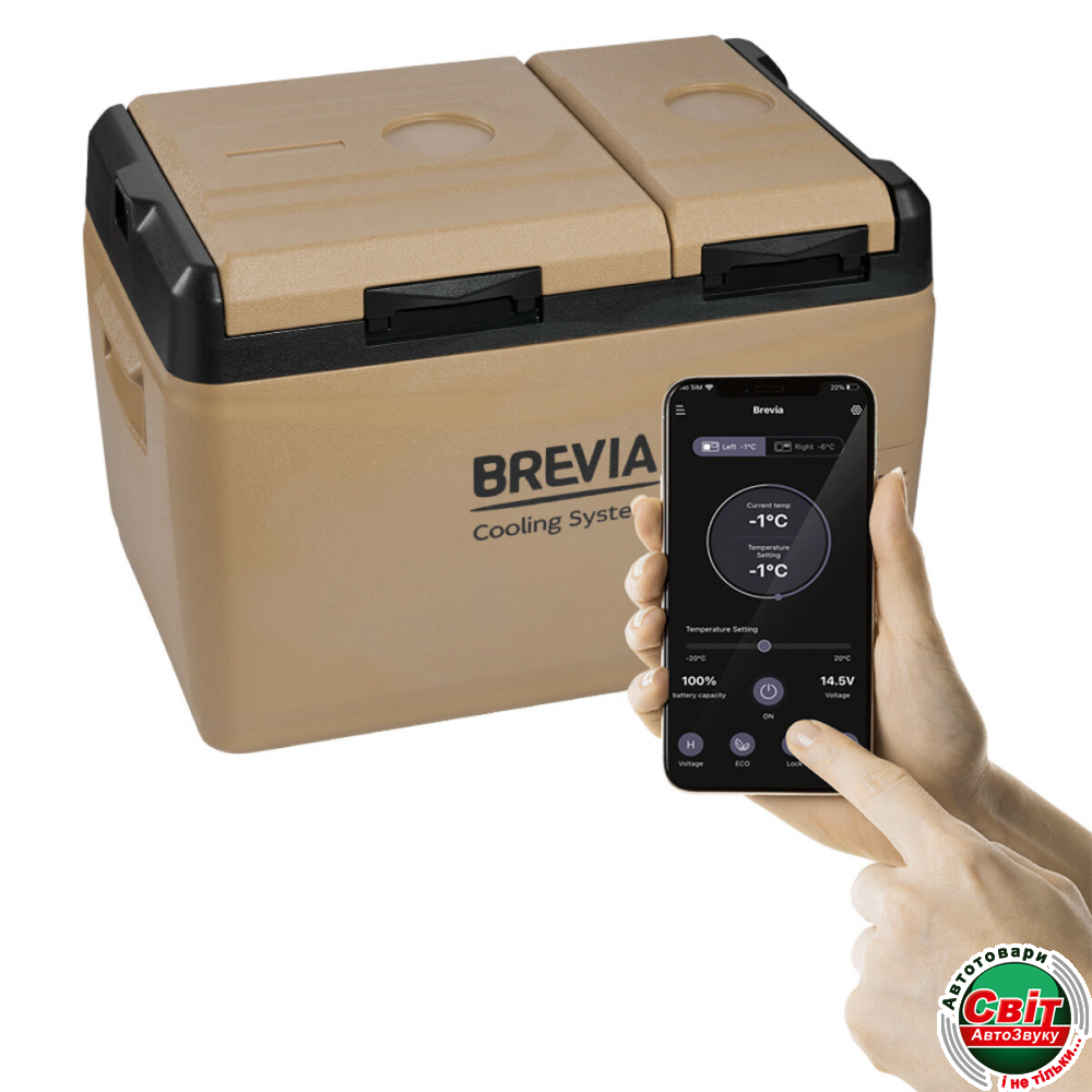 Автомобильный холодильник Brevia 31 л двухкамерный (23330) — мощный компрессорный холодильник для путешествий, кемпинга и длительных поездок. Благодаря двум отдельным камерам с независимым регулированием температуры он позволяет одновременно охлаждать и замораживать продукты.