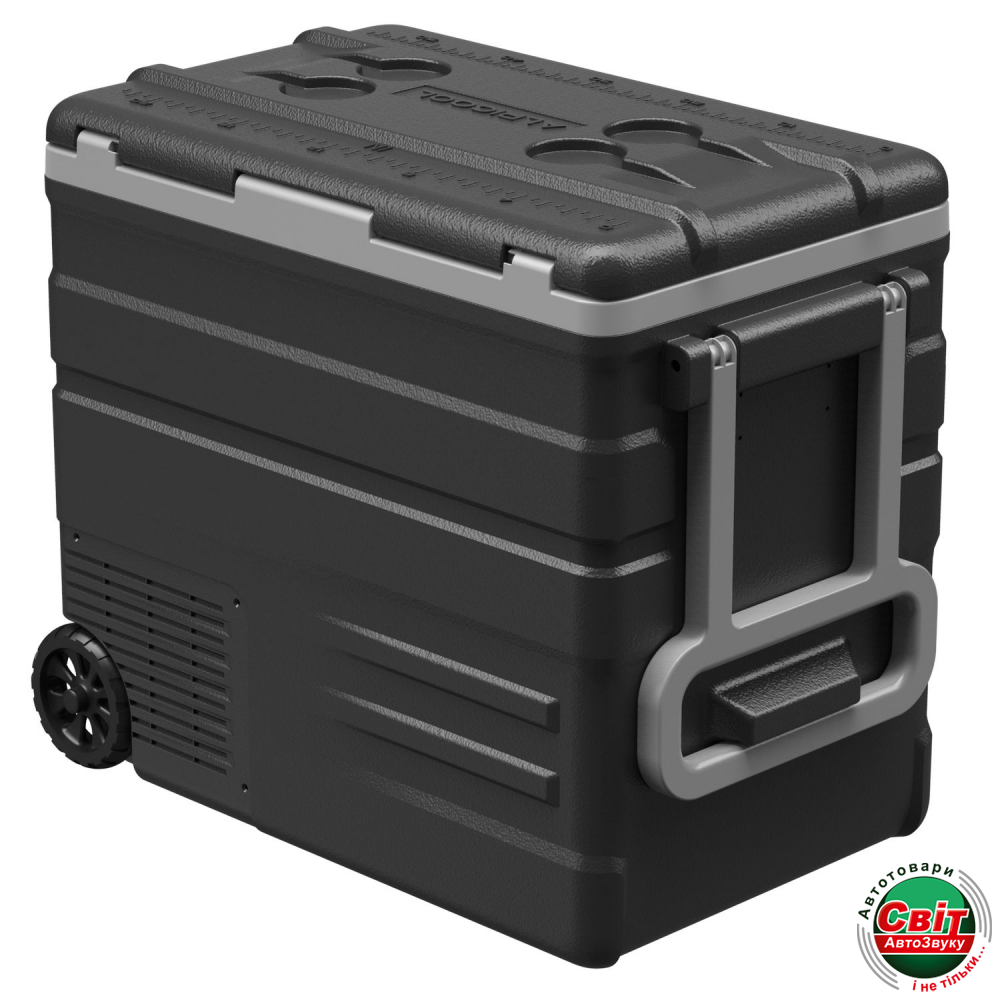 Холодильник имеет стойкие колеса и телескопическую ручку для легкой транспортировки вне автомобиля и прочные ручки по бокам для быстрой переноски/переставки. Корпус оснащен контрастным LCD-дисплеем и замком крышки (защита от непреднамеренного открывания). Диапазон температур в камере: от -20 до +20°C.