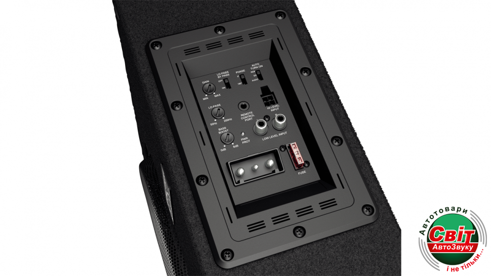 Входной сигнал высокого уровня на многополюсном разъеме упрощает интеграцию с заводской магнитолой и аудиосистемой, а вход низкого уровня на RCA предназначен для подключения к другим источникам после замены штатной магнитолы. Функция автоматического включения/выключения сабвуфера ART (Автоматическое Дистанционное Включение) может быть настроена на управление дистанционным сигналом источника, изменением напряжения на входе высокого уровня или звуковым сигналом на обоих входах. Управление фазой (0 - 180 °) завершает работу оборудования.