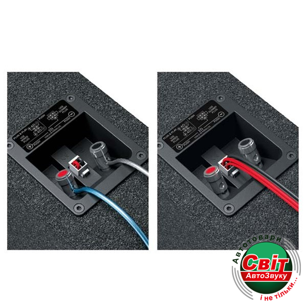 - Блок підключення SSP: Дозволяє швидко монтувати і знімати сабвуфер і містить як звичайні термінали, так і коннектори Plug-amp;-Play для підключення до підсилювачів Audison Prima і комутації звукових котушок