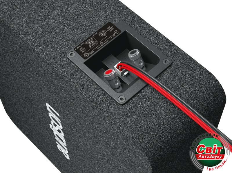 Пара високоякісних пружних циліндричних роз'ємів призначена для традиційного підключення до підсилювача. Спосіб комутації котушок (послідовно 8 Ом, паралельно 2 Ом, або окремо 4 Ом + 4 Ом) задається комплектним адаптером для новітнього роз'єму SSP (Sub Smart Plug). З допомогою цього ж роз'єму і комплектного Plugamp;Play кабелю здійснюється гранично легке підключення до підсилювачів Audison Prima.