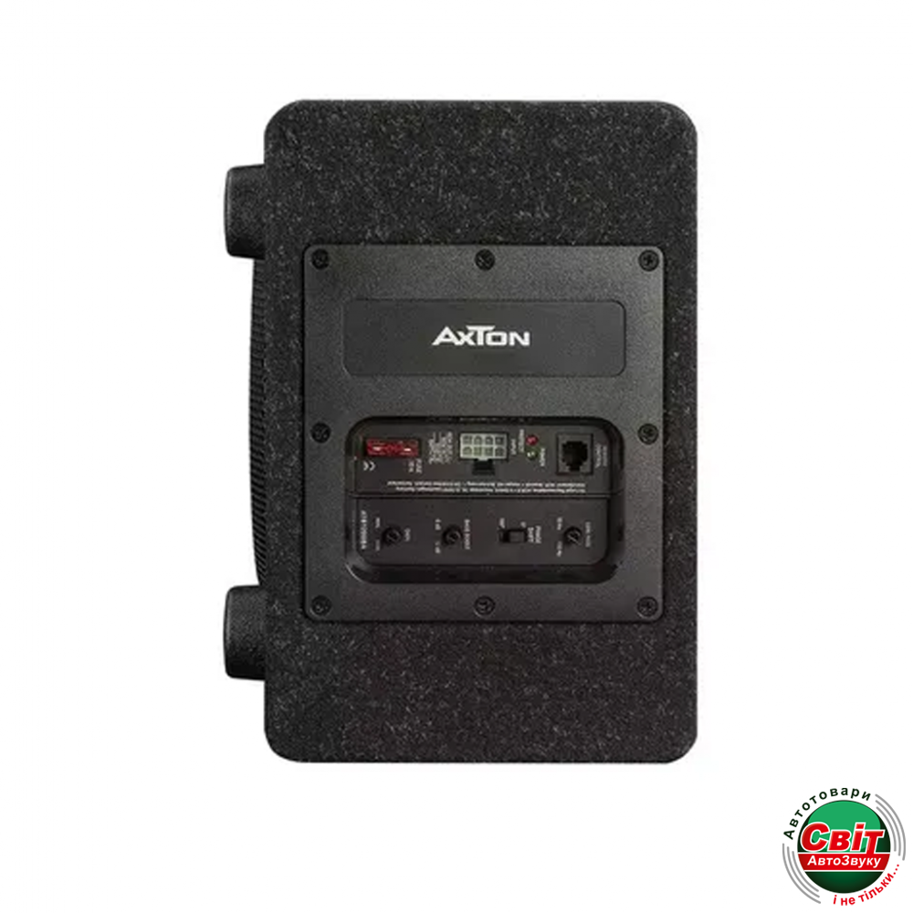 Сабвуфер Axton ATB120QBAAxton ATB120QBA - активний сабвуфер на базі 20 см динаміка у фазоінверторному виконанні. Вбудований підсилювач класу D забезпечує номінальну потужність у 100 Вт. Має входи високого (з автовмиканням) і низького рівня, НЧ-фільтр і бас-буст. Активний варіант компактного сабвуфера поміщається майже в кожен багажник або навіть між сидіннями великої кабіни водія, чи під пасажирським сидінням Fiat Ducato або Mercedes Sprinter. Жорсткий багатошаровий дифузор зі скловолокна та паперу також має великий вплив на переконливий звук цього компактного сабвуфера.