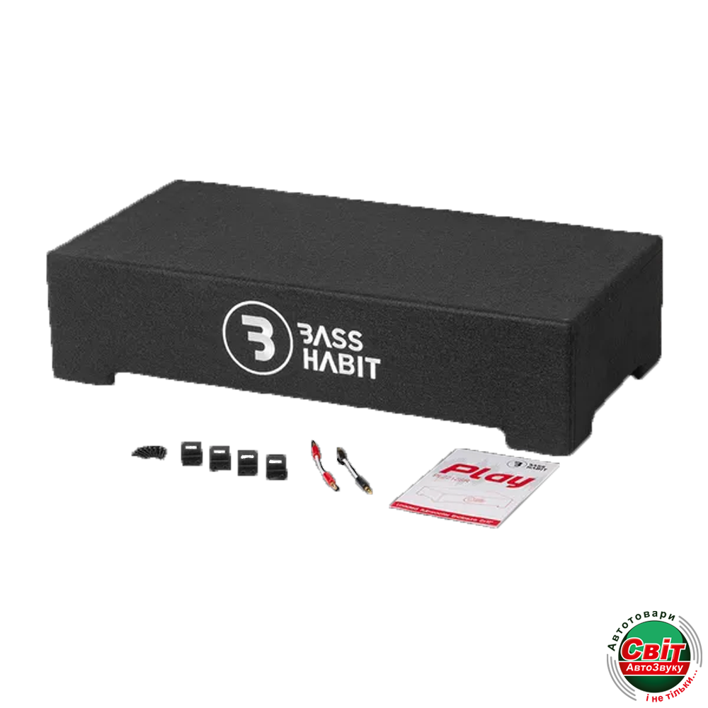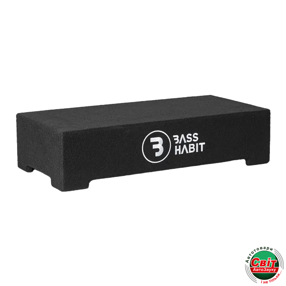 Корпус виготовлений із міцних матеріалів, добре заглушений та оброблений з розрахунком на щоденну експлуатацію – він стійкий до вібрацій, перепадів температур та механічних навантажень. Сабвуфер зручно розміщується у багажнику більшості легкових автомобілів без необхідності модифікації простору. Візуально він оформлений у фірмовому стилі Bass Habit — з червоними акцентами і логотипами, що підкреслюють його агресивний характер.