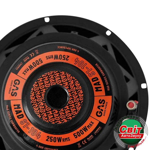 Сабвуфер GAS MAD S1-104Бренд GAS народився і виріс на пристрасті двох поколінь ще в 1997 році, але їхня відданість автомобільній аудіосистемі протягом багатьох років тільки зміцнилася! Компанія GAS Audio Power, родом із Швеції, продовжує розширювати кордони, щоб надати шанувальникам гучних систем великі, найкращі та гучні звукові компоненти для багатьох майбутніх поколінь!