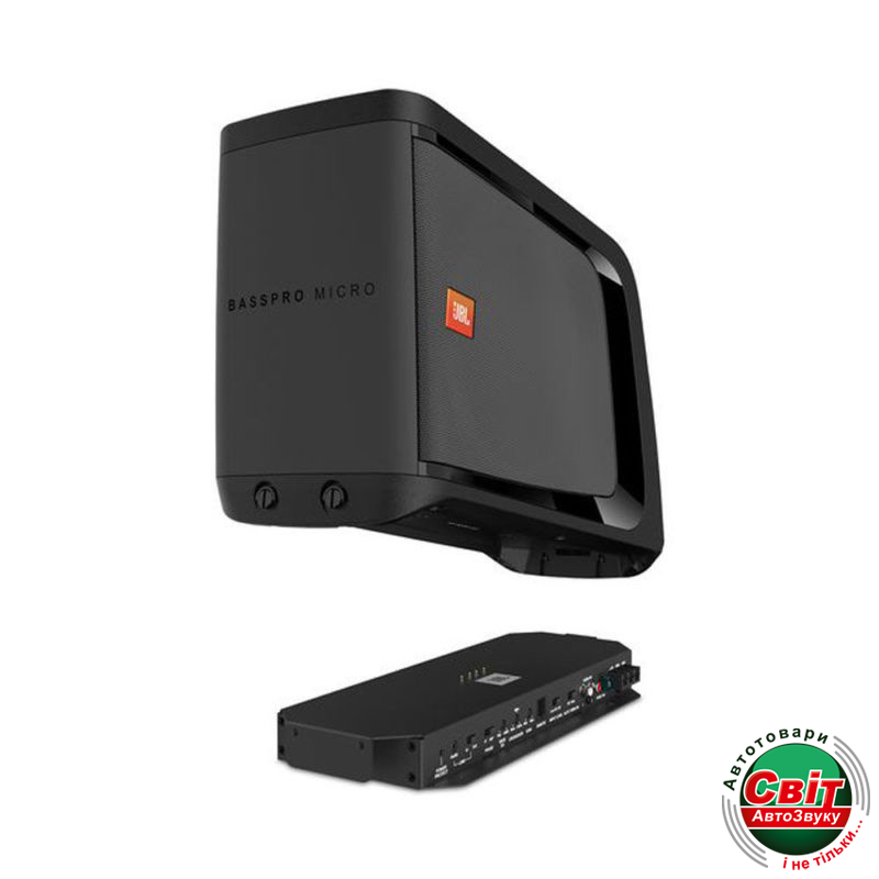 Корпус сабвуфера пристикований до стаціонарній базі підсилювача, але в лічені секунди від'єднується, забезпечуючи при необхідності додатковий простір для багажу. JBL BassPro Micro включає акустичні та лінійні входи, які легко підключаються до штатної аудіосистеми автомобіля. Користувачеві також доступні регулятори чутливості входу, частоти кросовера, фази і басового еквалайзера з посиленням 9 дБ. Ефективний і обтічний дизайн JBL BassPro Micro робить його ідеальним варіантом удосконалення аудіосистеми будь-якого автомобіля. Якщо ви хочете ще більше баса, то можете поєднати два сабвуфера, щоб організувати всередині машини справжній грім.