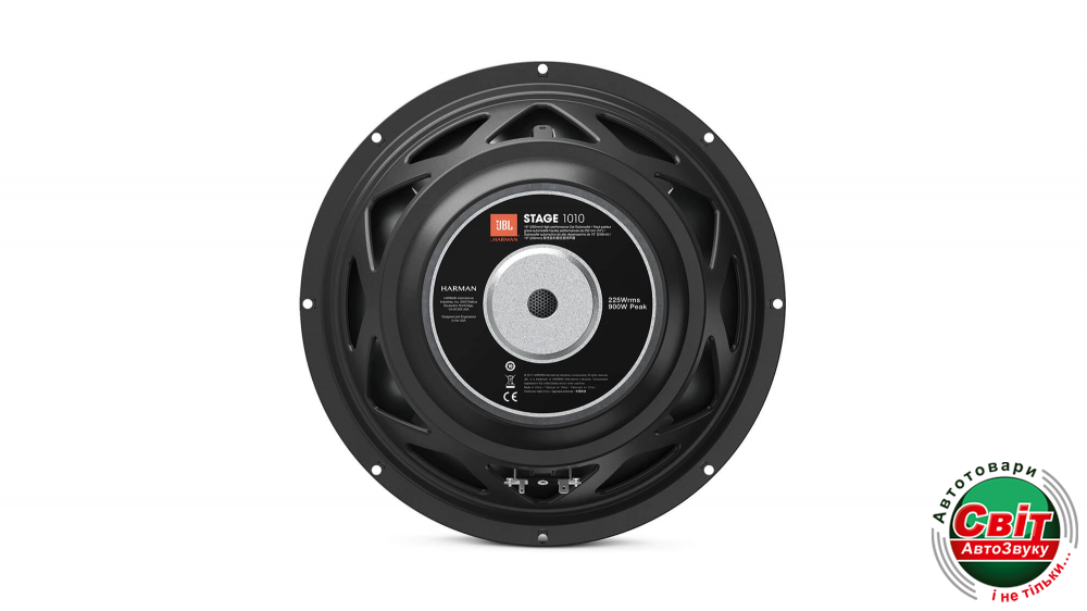 JBL Stage 1010 250-мм низькочастотний гучномовець, номінальною потужністю 225 Вт RMS і піковою потужністю 800 Вт