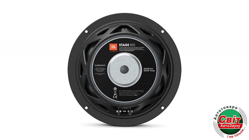 JBL Stage 810 200-мм низькочастотний гучномовець, номінальною потужністю 200 Вт RMS і піковою потужністю 800 Вт