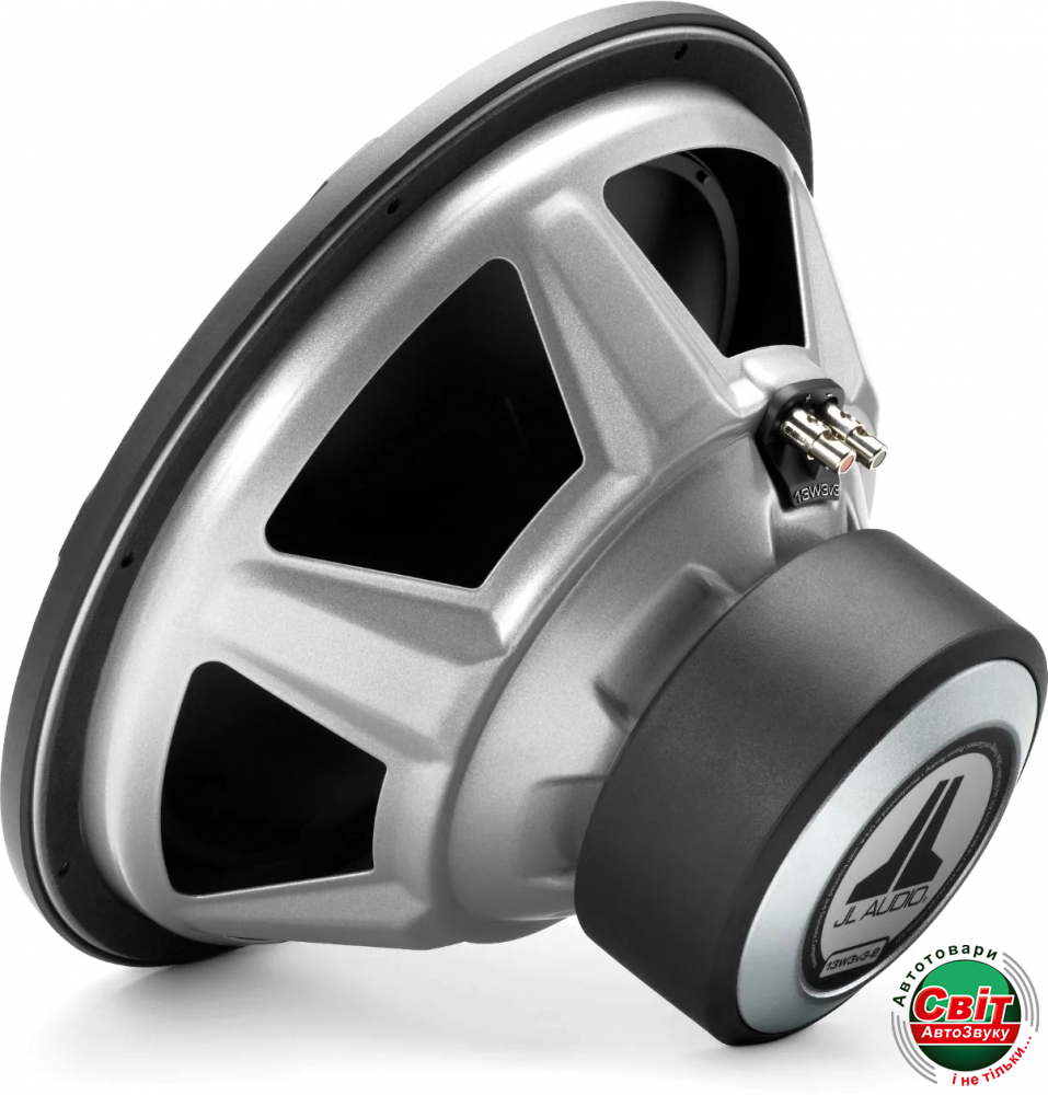 Сабвуфер JL Audio 13W3v3-2Компанія JL Audio розробила свої сабвуфери W3v3 для забезпечення потужного, точного басу із підсилювачем середньої потужності. Їхні великі дослідження складання двигуна призвели до створення конструкції, яка забезпечує плавне, точне рух конуса на будь-якому рівні потужності. Ексклюзивні функції охолодження відводять тепло від внутрішньої структури двигуна сабвуфера для довготривалої міцності та зниження спотворень. Сабвуфер W3v3 добре працює у герметичному або фазоінверторному корпусі.