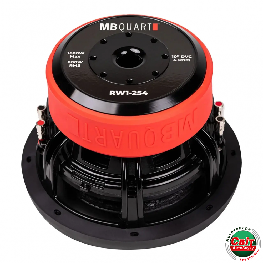 Сабвуфер MB Quart RW1-254Сабвуфер MB Quart Reference з подвійним опором 4 Ом забезпечує потужність 1600 Вт і оснащений масивним литим алюмінієвим кошиком з порошковим покриттям.