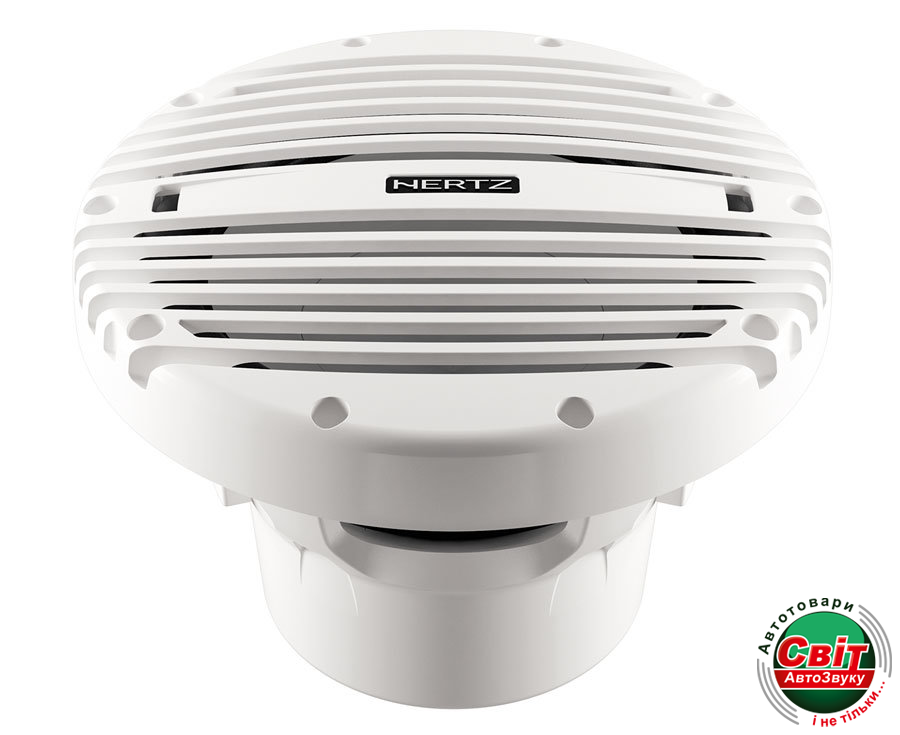 Сабвуфер морський Hertz HMS 10 B-2 WhiteHertz HMS 10 B-2 став історично першим сабвуфером Hertz, придатним до найбільш жорстких умов експлуатації на різних видах водних і наземних транспортних засобів. Конструкція надійно захищена від впливу солоної морської води і туману, ультрафіолетового (УФ) випромінювання, пилу, а також готова до сильних перепадів температур і роботі під впливом прямих сонячних променів в жарку погоду. У традиціях Hertz, високу якість звучання досягається з хорошим запасом потужності і вражаючою глибиною баса. Характеристики оптимізовані для умов установки infinity baffle (free air, нескінченний акустичний екран). Це помітно полегшує розміщення: достатньо приділити увагу жорсткості монтажної поверхні і герметичності прилягання до неї монтажного фланця динаміка, тоді як обсяг акустичного оформлення може бути як завгодно великим (але не менше 50 л). Застосовуються конструктивні рішення спрямовані на максимальні звукові характеристики з урахуванням специфіки експлуатації. Дифузор з поліпропілену містить УФ-інгібітори, підвіс з синтетичної гуми Santoprene відрізняється винятковою зносостійкістю, центруюча шайба з прогресивним кроком гофра виконана з надміцного араміда (цей матеріал більш відомий по торговій марці Kevlar), полімерна кошик забезпечує надійний захист магнітної системи і вбудованого кросовера від несприятливого впливу зовнішнього середовища.